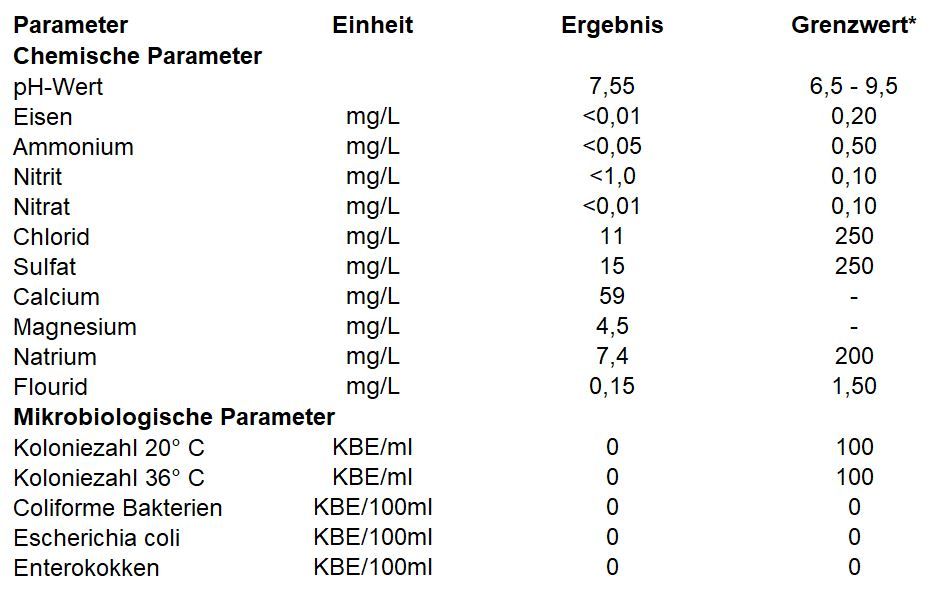 *Grenzwerte nach Trinkwasserverordnung