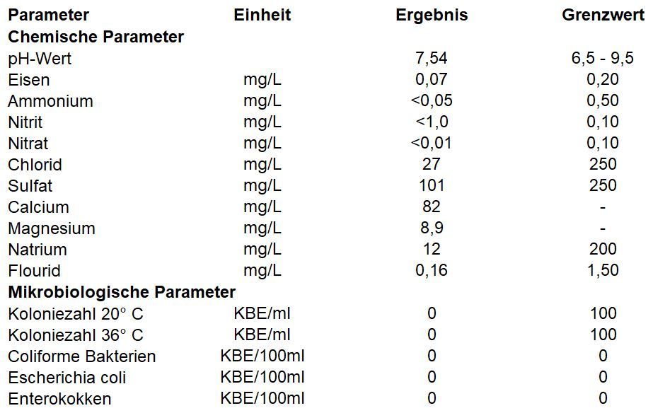 Ergebnisse der periodischen und routinemäßigen Trinkwasseranalyse der WVGE